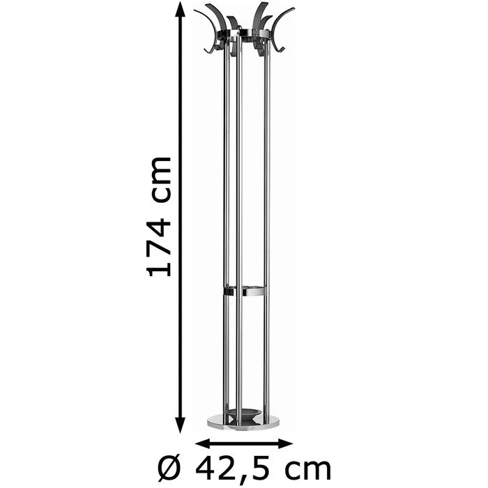 sonstiges: aus verchromtem Metall, Hakenkrone mit 6 Hut- und 6 Mantelhaken, Tropfschale und Schirmhalter