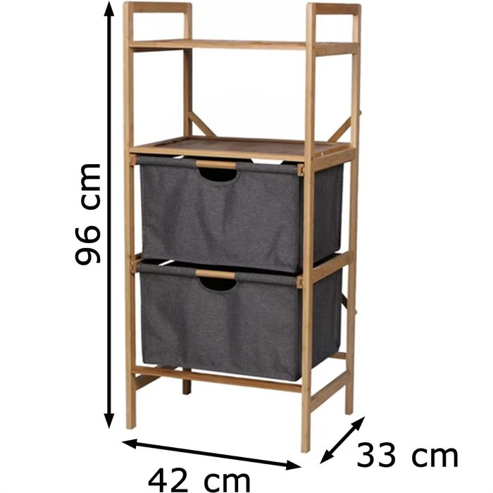 • Mit 2 ausziehbaren, grauen Wäschekörben aus 100% Polyester
