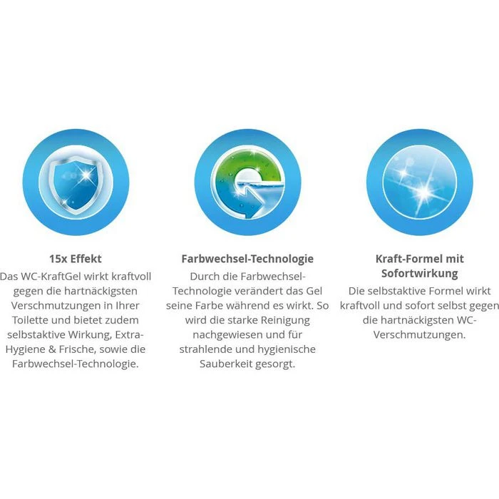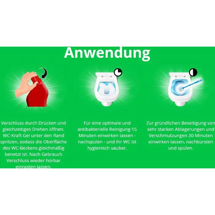 Hinweis: WC-Reiniger vorsichtig verwenden. Vor Gebrauch stets Etikett und Produktinformationen lesen.