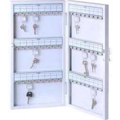sonstiges: mit beschriftbaren Hakenleisten und Schlüsselanhängern, magnetische Tür, Hakenabstand 30 mm, Wandbefestigung vorgerichtet (es werden 4 Schrauben der Größe 4×16 benötigt)