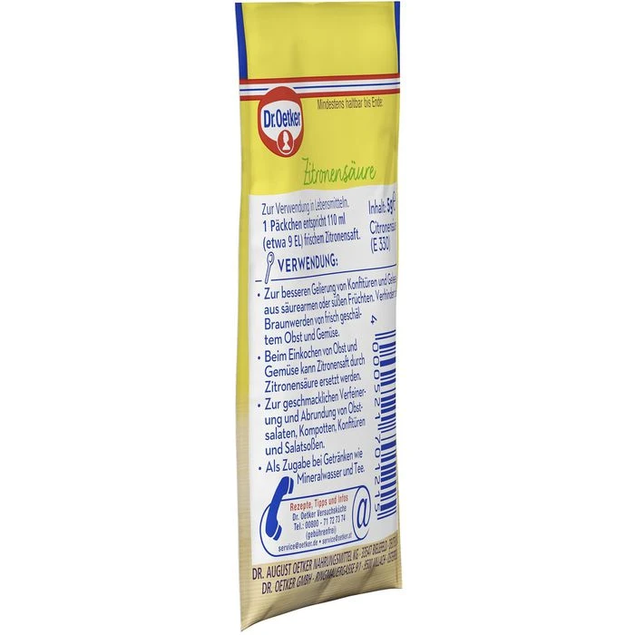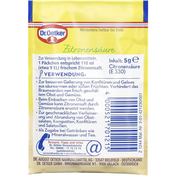 geeignet für: die Gelierung von Fruchtmassen, Entkalkung von Kaffeemaschinen, Wasserkochern, Heißwassergeräten