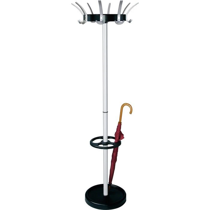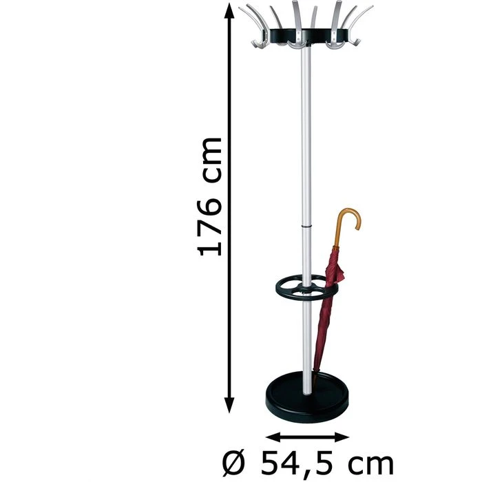 sonstiges: drehbare Hakenkrone mit 8 Hut- und 16 Mantelhaken, Schirmhalter mit Tropfmulde, standsicher durch schweren Fuß