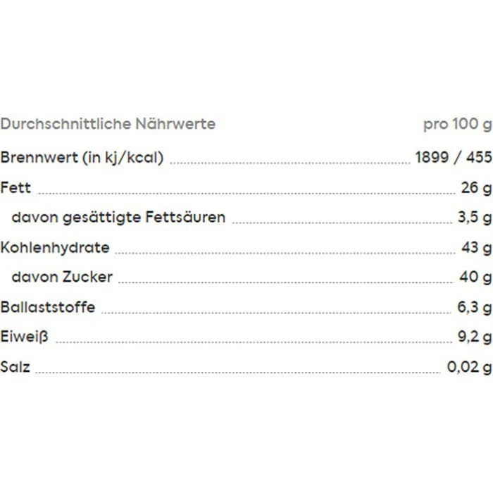 • Nüsse sind roh und naturbelassen, Rosinen schwefelfrei