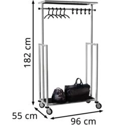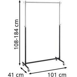 Jankurtz Garderobenständer Boston, 494209, Mit Rollen, Ausziehbar, Metall, Schwarz / Silber