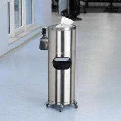 VAR Handtuchspender 2016, Desinfektionsstation, Abfallkorb, Rollenhandtücher, Fahrbar, Edelstahl