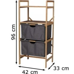 Böttcher-AG Wäschekorb Mit 2 Fächern Und 2 Ablagen, Aus Bambus, Grau, 42 X 96 X 33 Cm, 25 Liter
