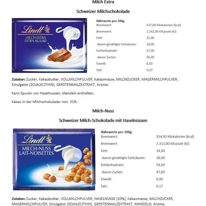 • Ein Minischokoladentäfelchen wiegt ca. 7g
