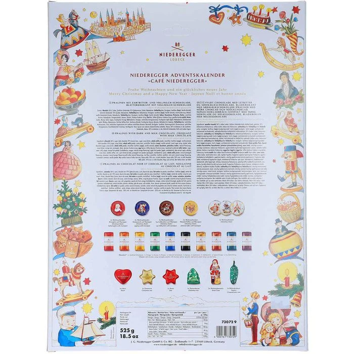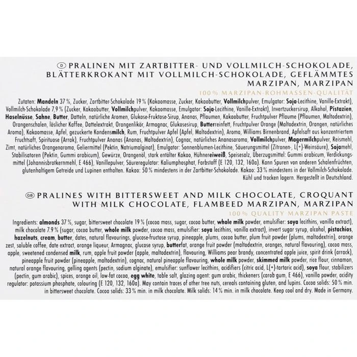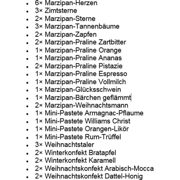 • Gefüllt mit Spezialitäten aus Marzipan, Nougat und Blätterkrokant