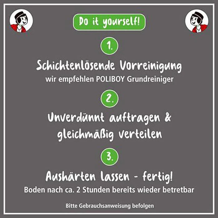 Hinweis: Bodenpflege vorsichtig verwenden. Vor Gebrauch stets Etikett und Produktinformationen lesen.