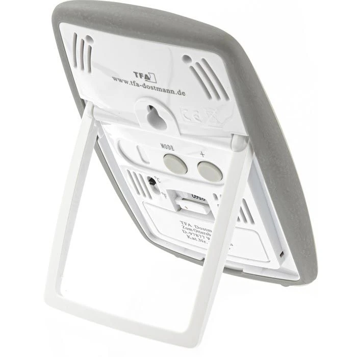 sonstiges: Speicherung und Anzeige der Max.- und Min.-Werte, zum Aufstellen mit integriertem Ständer, Anzeige in Celsius oder Fahrenheit umschaltbar, automatische oder manuelle Rückstellung der Max/Min-Werte