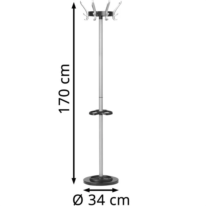 Unilux Garderobenständer Cypres 100340640, Mit 24 Haken, 170 X 34cm (HxØ), Metall, Silber