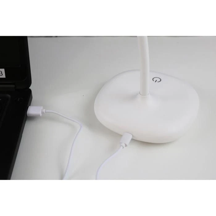 sonstiges: mit Touch-Dimm-Schalter am Fuß, integrierter 1800 mAh Akku, Netzbetrieb via USB-Adapter, flexibler Schwanenhals-Leuchtenarm, zusammenfaltbar