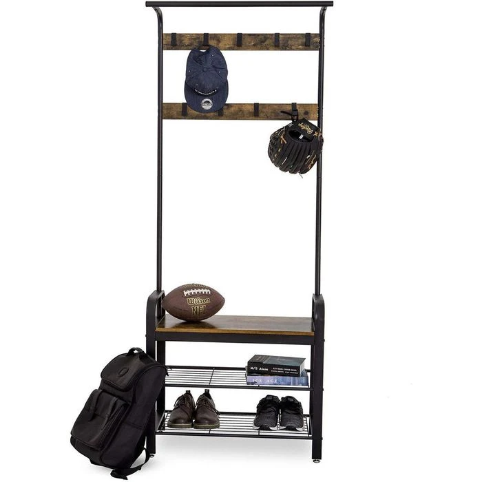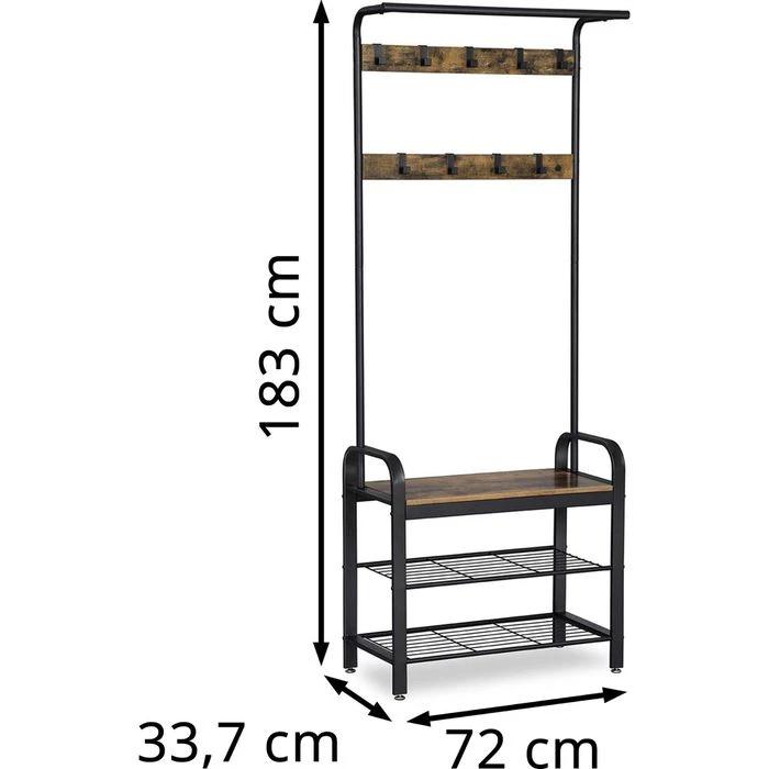 Vasagle Garderobenständer HSR40B, Vintage, Mit 9 Haken, Metall / Holz, Schwarz / Braun